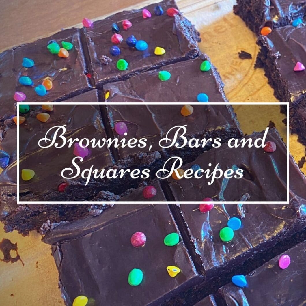 The “at home” recreation of “Little Debbies, Cosmic Brownies”. A dark,fudgy, chewy brownie with chocolate ginache on top and sprinkled with candy coated chocolate chips.