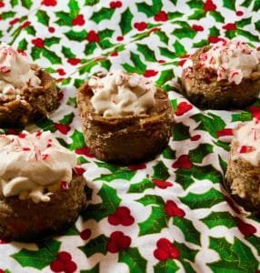 A creamy, smooth gingerbread spiced cheesecake, decorated to look like a gingerbread house.