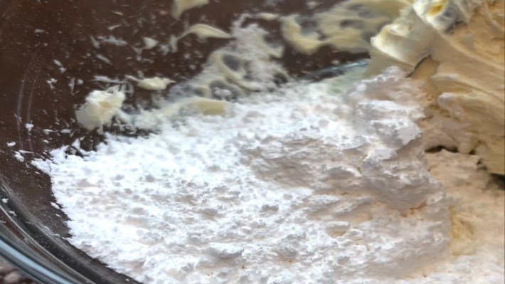 - Add the confectioners sugar in little by little and beat until combined.